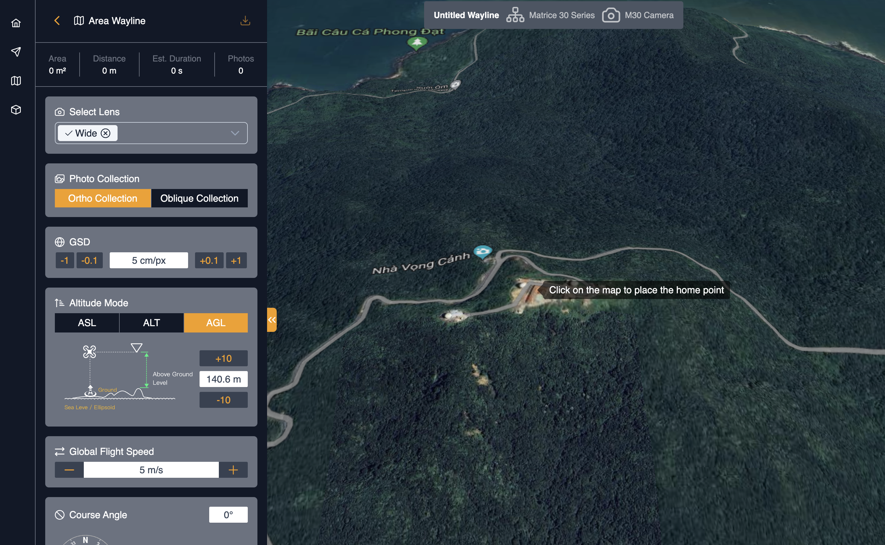 - Absolute Altitude: Waypoint altitude relative to sea level.